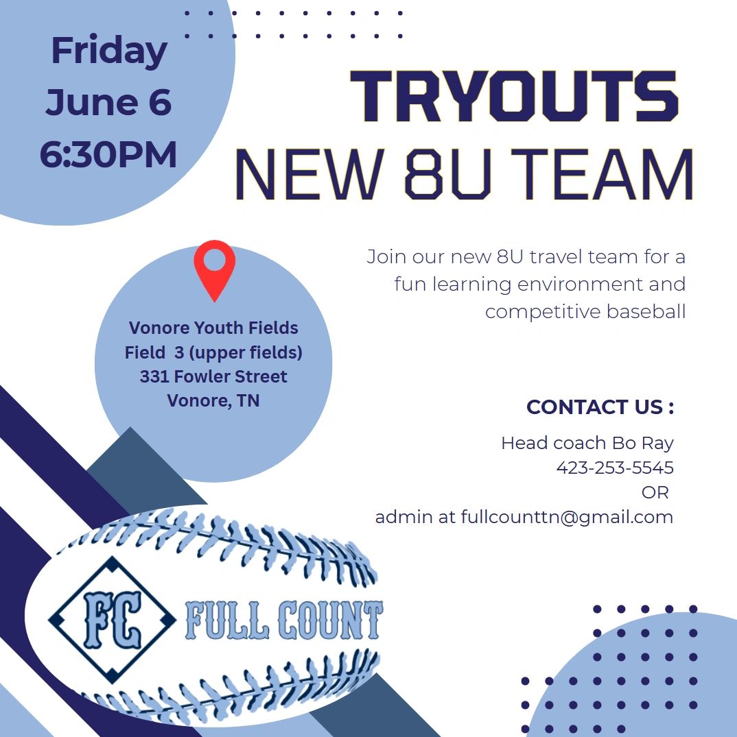 Full Count TN is excited to announce an upcoming 8U team. Check our teams page for more information.